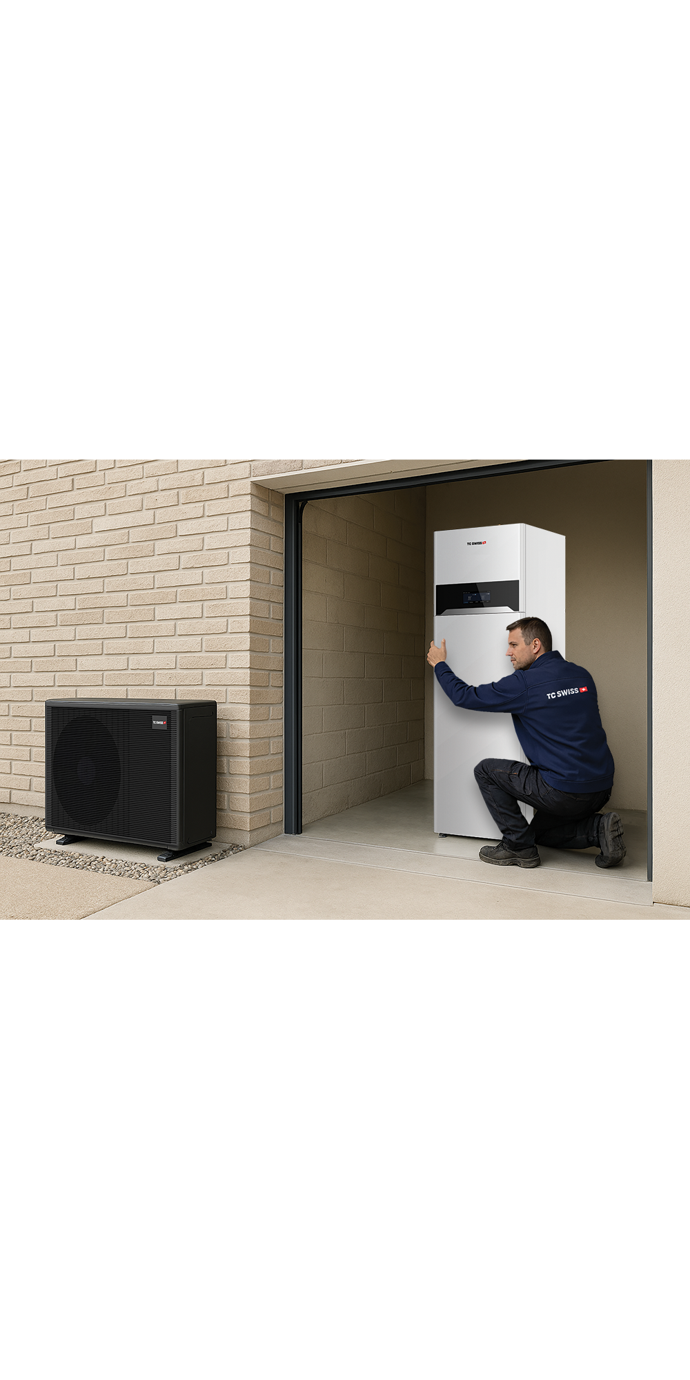 De nieuwe TC Swiss GT warmtepomp voorziet uw woning van centrale verwarming, verkoeling en warm kraanwater.